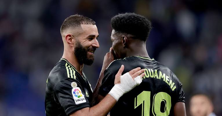 ‏كورتوا، كارفاخال، ميليتاو، ألابا، ميندي؛ مودريتش، تشواميني، كروس؛ فالفيردي، بنزيما، فينيسيوس. مع روديغر.